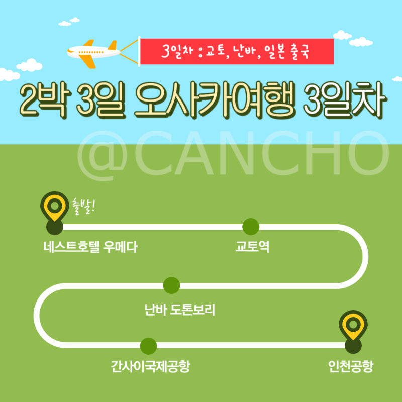 1일차는 별 일이 없었고, 방금 일본에 도착해서 호텔에 체크인하고 술을 마셨기 때문에 별 일이 없었습니다. 2일차: 도톤보리 관광, 가벼운 쇼핑, 친구들과의 수다. 3일차: 교토 버스 투어.